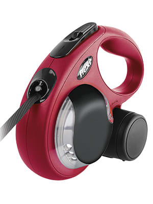 Flexi dog leads have a comfortable, ergonomic handle to ensure a good grip and comfort during use. The tape lead is lightweight but strong; it has been rigorously tested for your pets safety. The Flexi dog lead has been designed to be both compact and stylish and has a chrome snap hook to attach to your dogs harness. The leads can be customised using the Multi Box and LED lighting accessories (sold separately) for small models and larger.