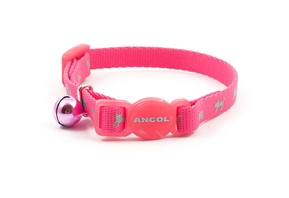 The Ancol high visibility pink kitten collar is hard wearing and easily adjustable. It is constructed from soft nylon to produce a comfy and safe collar. It has a thinner strap which is perfect for kittens and small cats. It has a reflective kitten pattern printed along the collar. This helps to ensure your pet is safer and more visible when exploring the streets at night. For safety the collar has a break-away buckle which allows your cat to easily escape if they get themselves caught whilst climbing. The warning bell also helps to give birds and small mammals a warning of your pet’s presence while they hunt.